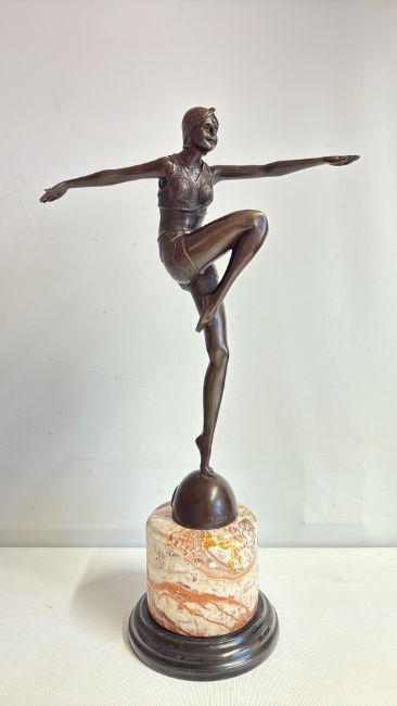 Bronze art deco female swimmer on marble base