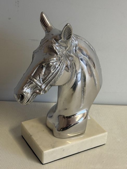 Chrome horses head on marble base