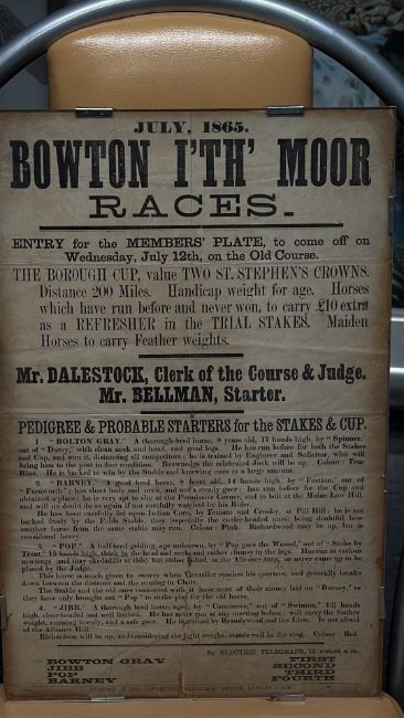 Victorian racing broadside: Bowton T'th' Moor Races, July 1865
