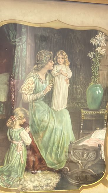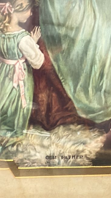 Framed coloured print, "Our Father"