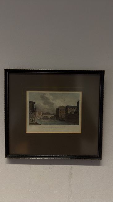 Framed hand-coloured print, New Bailey Bridge, Manchester