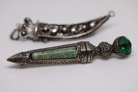 Miracle kilt pin dirk dagger brooch with green stones & dagger brooch & sheath