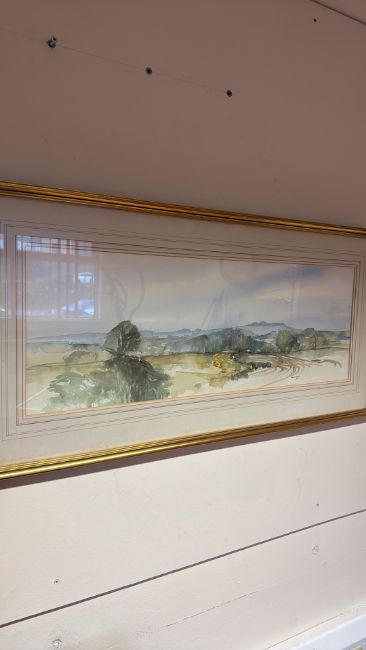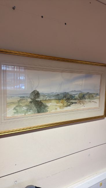Jean R. Hawes (attributed), panoramic watercolour landscape, 1971