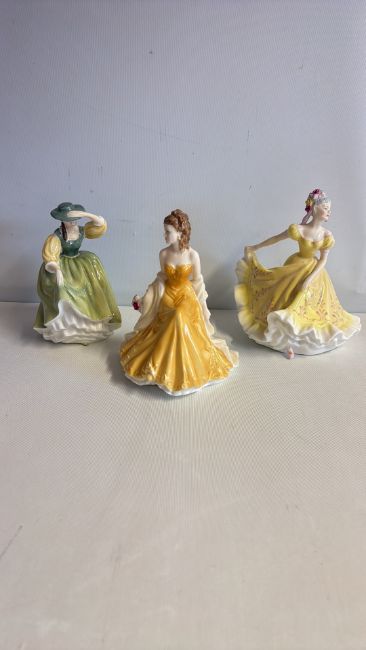 Set of 3 Royal Doulton and Royal Worcester bone china lady figurines