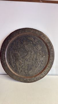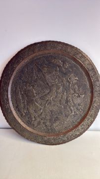 Engraved Asian metal charger with figural scene