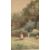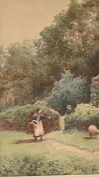 E.A. Stewart, watercolour of a cottage garden with sheep (34cm x 44.5cm including frame)