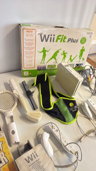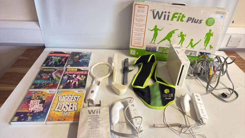 Nintendo Wii console with boxed Wii Fit Plus, games and accessories