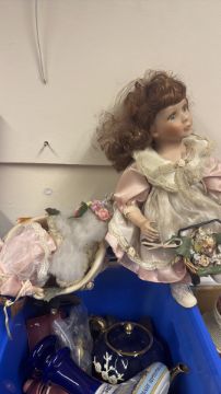 Mixed decorative ceramics and porcelain dolls
