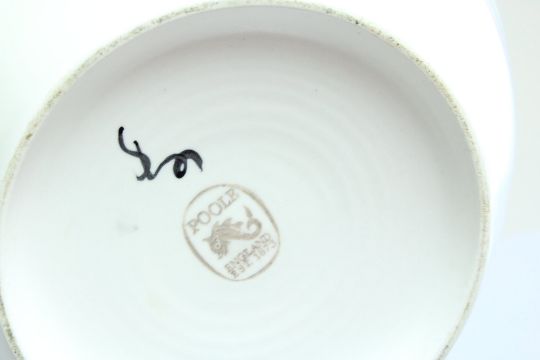 A Poole Pottery earthenware vase, of tapering ovoid form, hand-painted with polychrome flowers and foliage with a stylised bird, banded rim and base. Height 21 cm