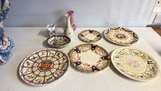 Group of decorative ceramics including commemorative calendar plates and small jugs