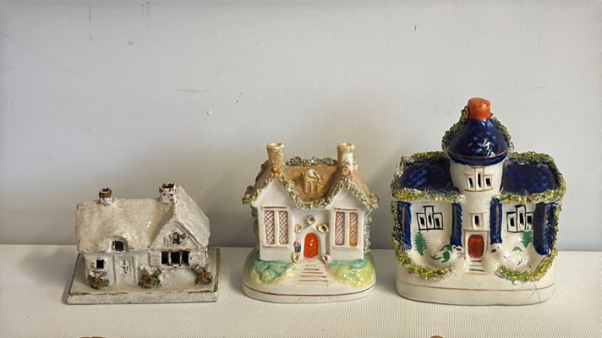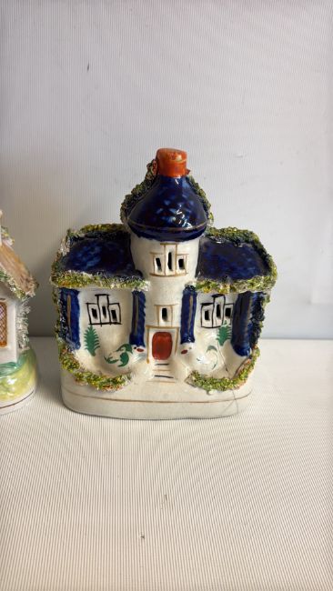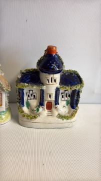 Group of cottage-form glazed ceramic ornaments