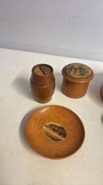 Collection of Mauchline ware, napkin ring Stuart Tartan c1880