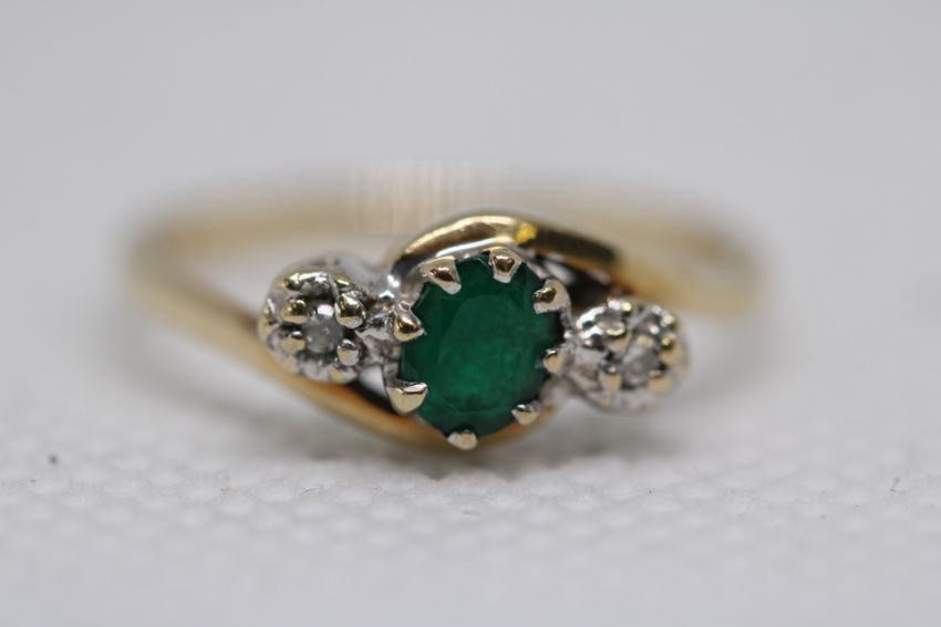 9ct Gold ring set with emerald & diamond Size L Weight 1.7g