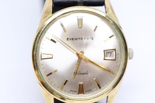Vintage gents gold plated Everite King 21 jewel swiss made mechanical watch with date