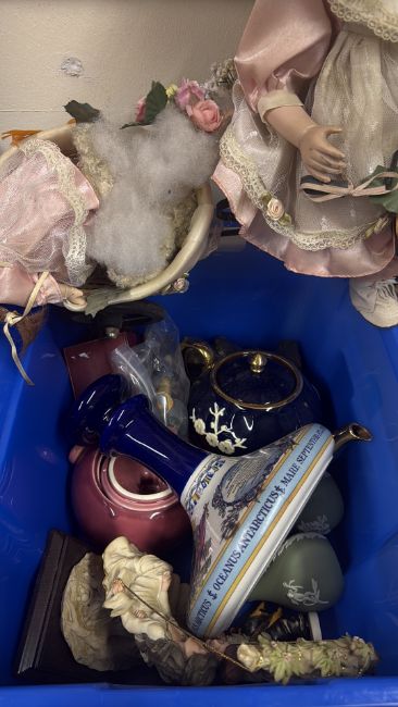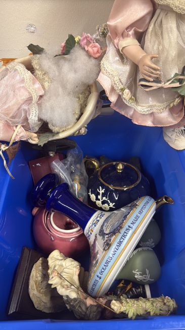 Mixed decorative ceramics and porcelain dolls