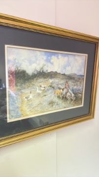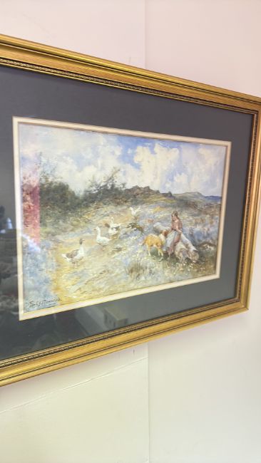 A signed framed watercolour pastoral landscape (40.5cm x 53cm including frame)