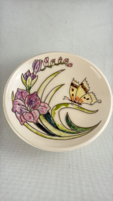 Moorcroft butterfly and floral pin dish, boxed