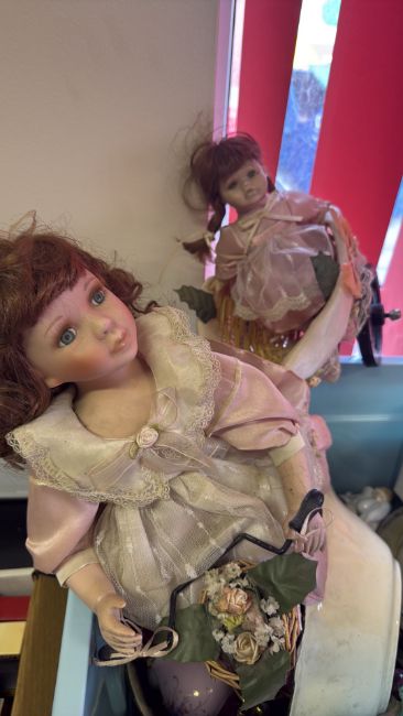 Group of porcelain dolls, ceramics and a boxed Bburago model car