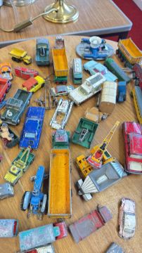 A group of vintage die-cast and tinplate toy vehicles