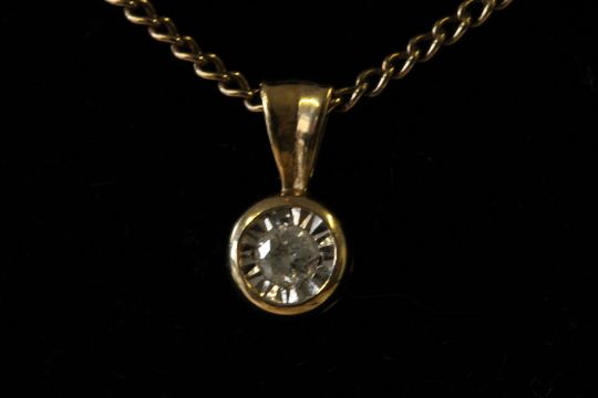 9ct Gold chain & diamond pendant Weight 3.8g Diamond size approx. 0.25ct