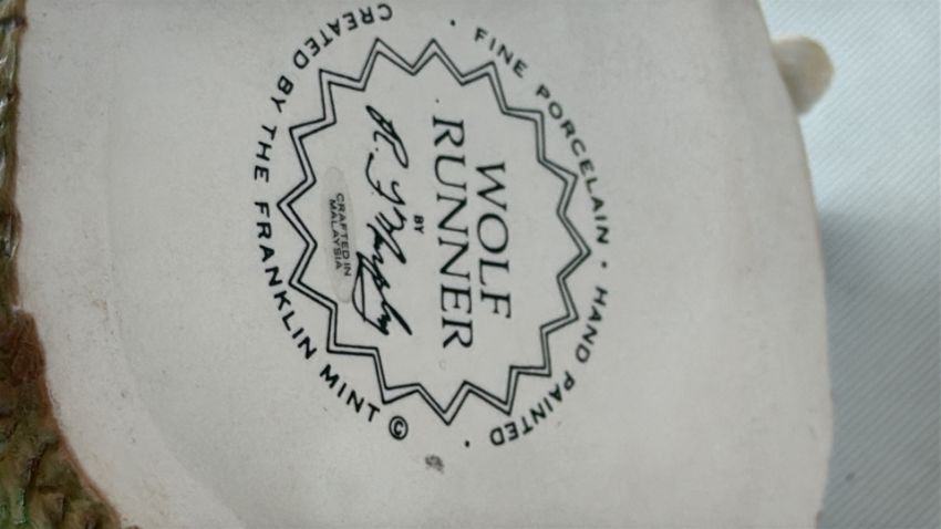 Franklin Mint 'Wolf Runner' porcelain figure group by P. J. Mene
