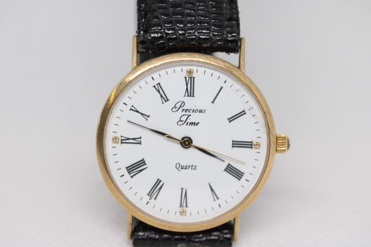 Gents 9ct Gold Precious Times Quartz Watch not currently ticking, very clean watch possibly requires a battery