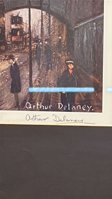 Arthur Delaney signed limited-edition colour print, urban tram street scene (306/650) (54cm x 43.5cm including frame)