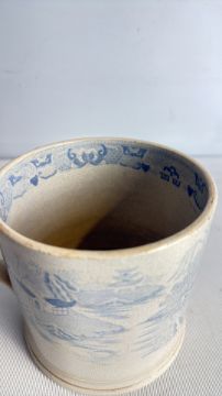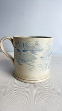 Blue and white victorian transfer-printed crackle-glazed earthenware mug (quart)