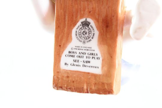 Royal Worcester bone china figure group, “See-Saw”, by Glenis Devereux