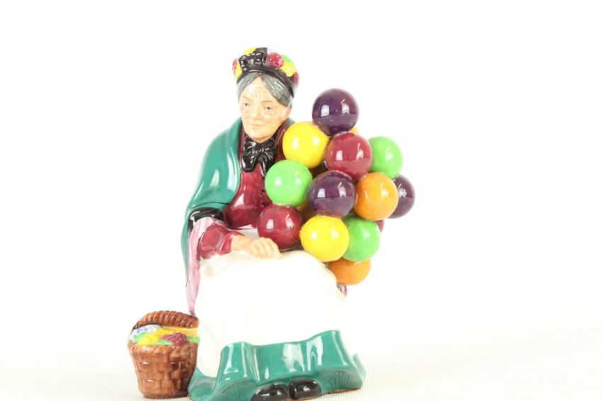 Glazed Ceramic Figurine of an Elderly Woman with Coloured Balls