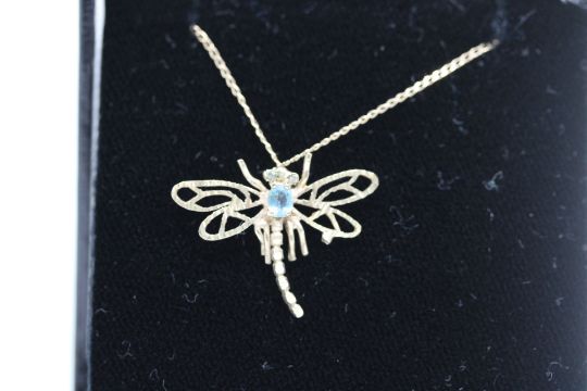 9ct Gold chain & dragonfly pendant Weight 2g