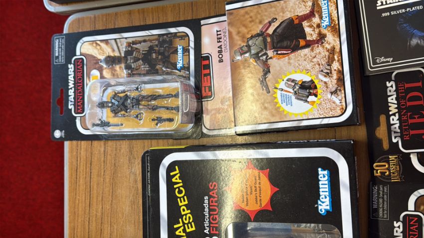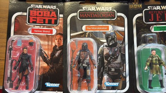 Group of Kenner Star Wars carded action figures (incl. The Mandalorian, Fennec Shand, Princess Leia Endor, and 3-figure pack)