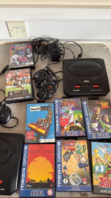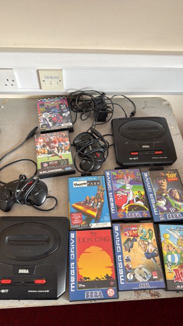 Sega Mega Drive II console with controllers, leads and assorted boxed games