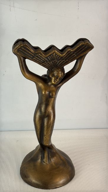 Art Deco-style Patinated Bronze Figural Stand
