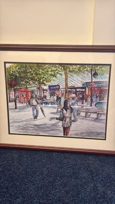 Signed watercolour street scene, dated 2009 signed Carol Taylor (44.5cm x 54cm including frame)