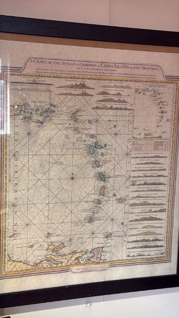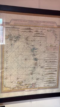 Framed reproduction chart map of the Antilles after L. S. de la Rochette
