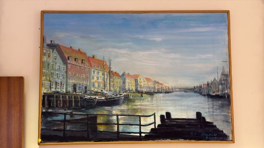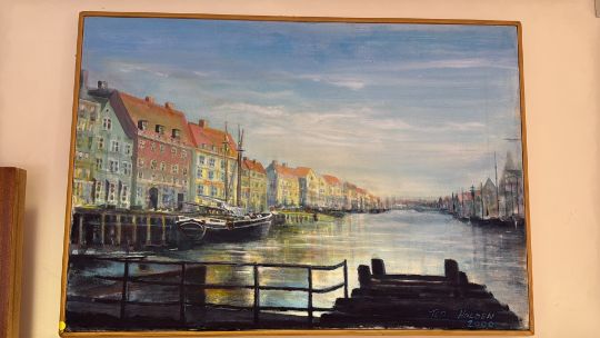 Ted Holden: Harbour Scene, signed and dated 2000 (53cm x 75cm including frame)