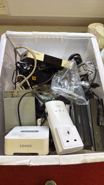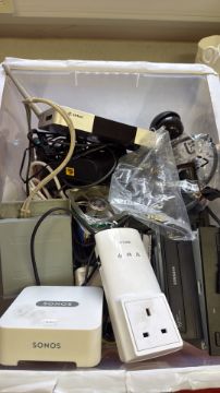 Assorted electronics including Sonos, D-Link, Samsung and Zidoo components