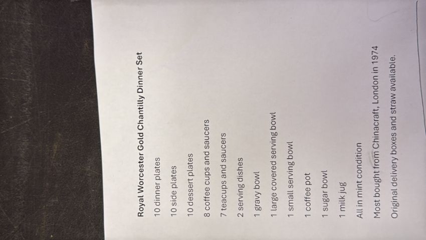 Royal Worcester Gold Chantilly bone china dinner service