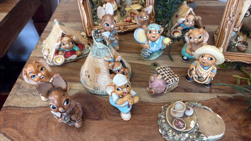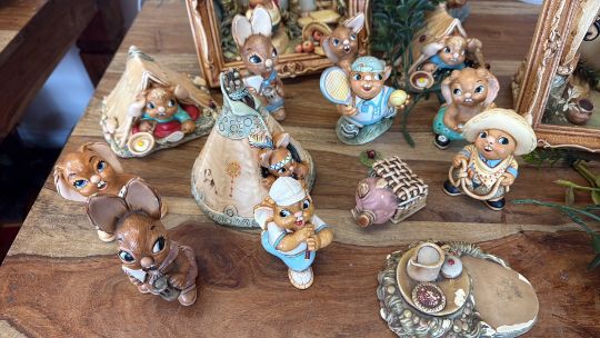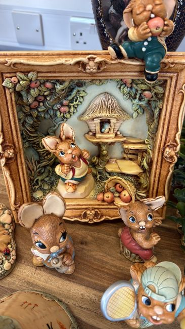 A group of Pendelfin rabbit figures and diorama scenes
