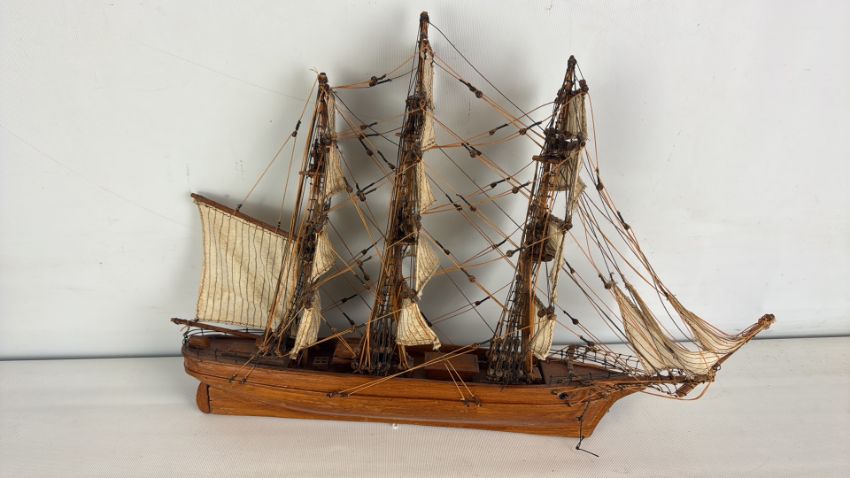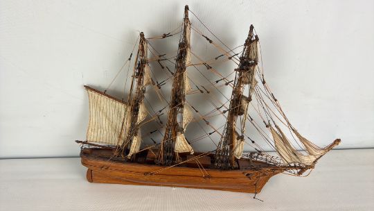 Wood and Canvas Model of a Three-Masted Sailing Ship