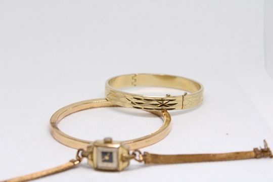 2 Gold plated together with gold plated ladies wristwatch