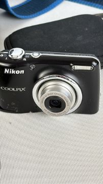 Group of cameras and accessories including Pentax P30N, Nikon Coolpix and Vivitar flash